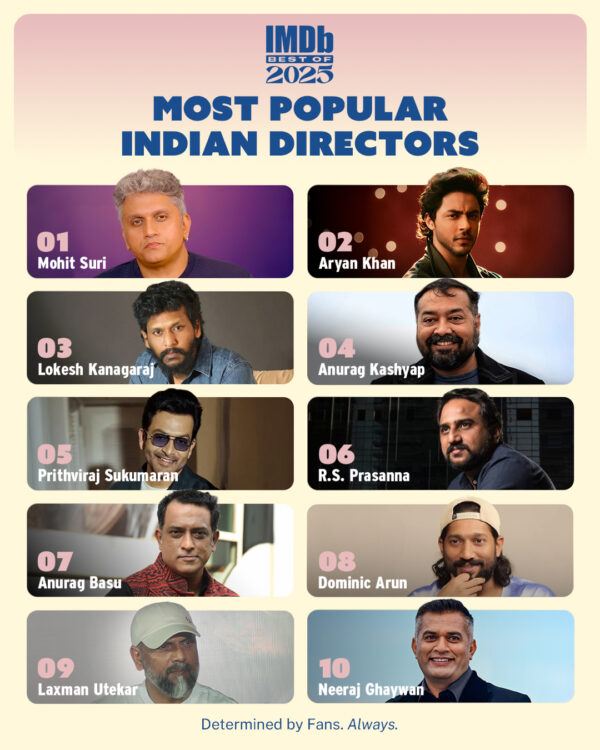 The lists are compiled from IMDb’s weekly rankings across the entire year, driven by actual page views from over 250 million monthly visitors around the globe. With this edition, IMDb has formally recognised how Indian directors are becoming fan favourites in their own right, with world-building and storytelling now key drivers of online fandom.